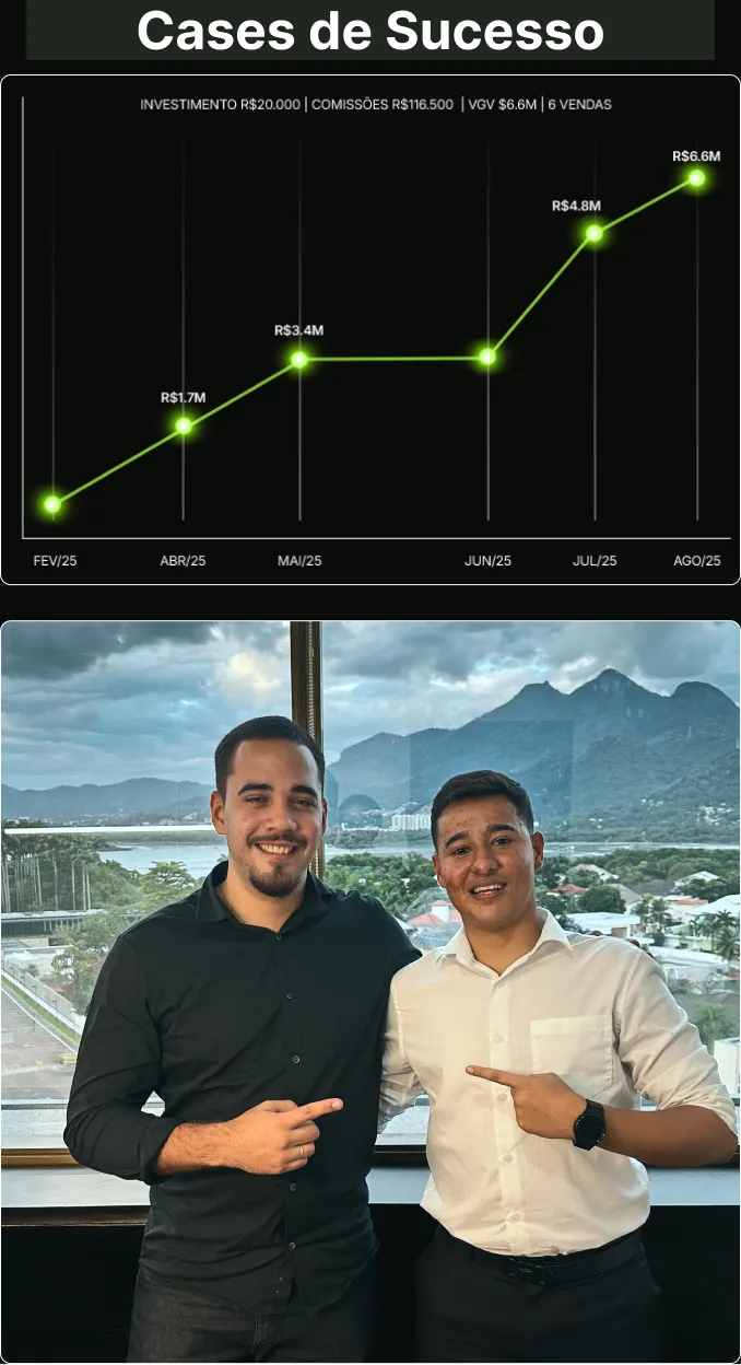 Foi exatamente isso que aconteceu com o Pedro Cavallo, da Barra da Tijuca – RJ. Com nosso suporte, ele potencializou sua performance comercial e alcançou resultados expressivos, mantendo um ritmo consistente de vendas. Em apenas 6 meses, ele concretizou 6 negócios, incluindo duas coberturas de alto padrão, uma delas avaliada em R$ 1,9 milhão. Um resultado que reforça o poder de uma parceria estratégica bem alinhada.